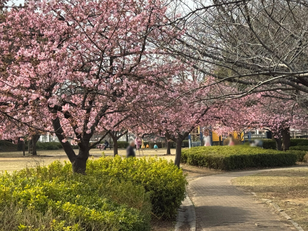 川口からもすぐ!東浦和駅近くの「井沼方公園」の河津桜が咲いてる!