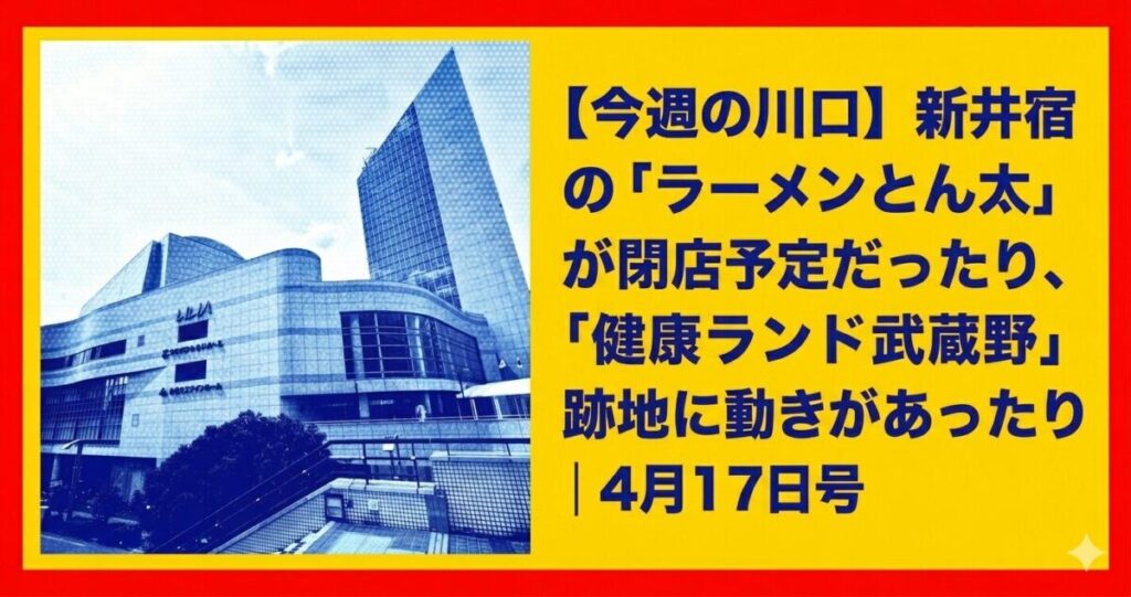 【今週の川口】新井宿の「ラーメンとん太」が閉店予定だったり、「健康ランド武蔵野」跡地に動きがあったり|4月17日号