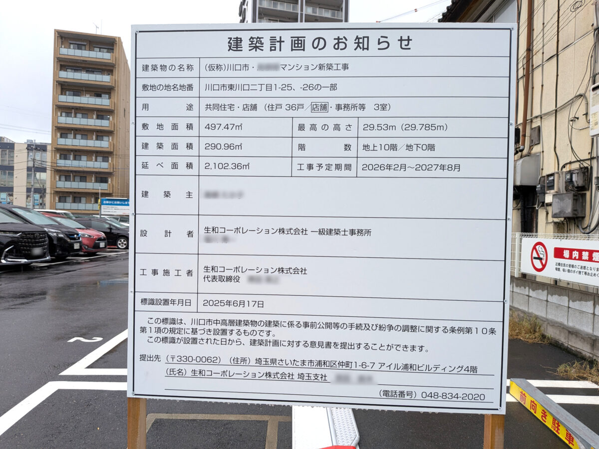 東川口駅前に店舗も入る地上10階建てのマンションができるみたい。