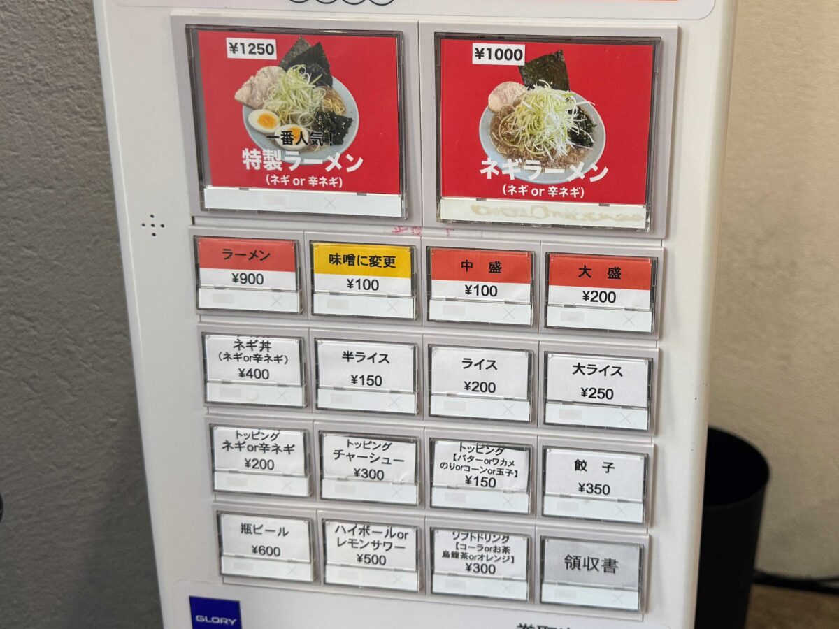 店内入ってすぐ左側には券売機が。こちらで食券を購入してから着席します。