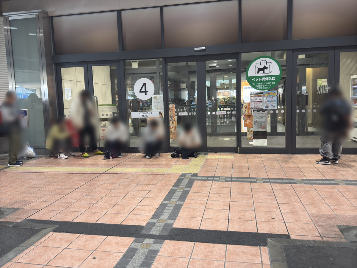本日オープンの駿河屋の入場列。ウエストモール東入口4番口から20名ほどの列だったのですが・・・