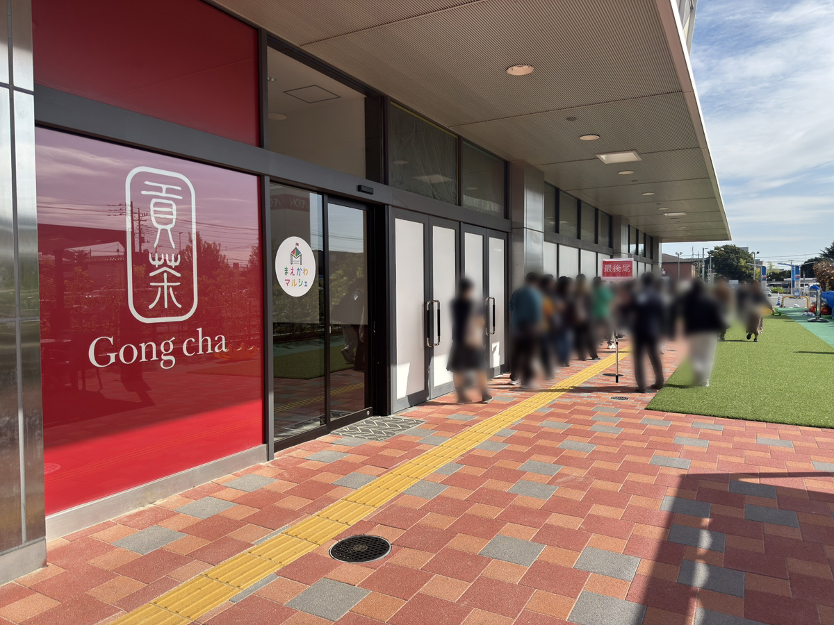 列が建物に沿って角を曲がり、ゴンチャのあるところまで差し掛かっています