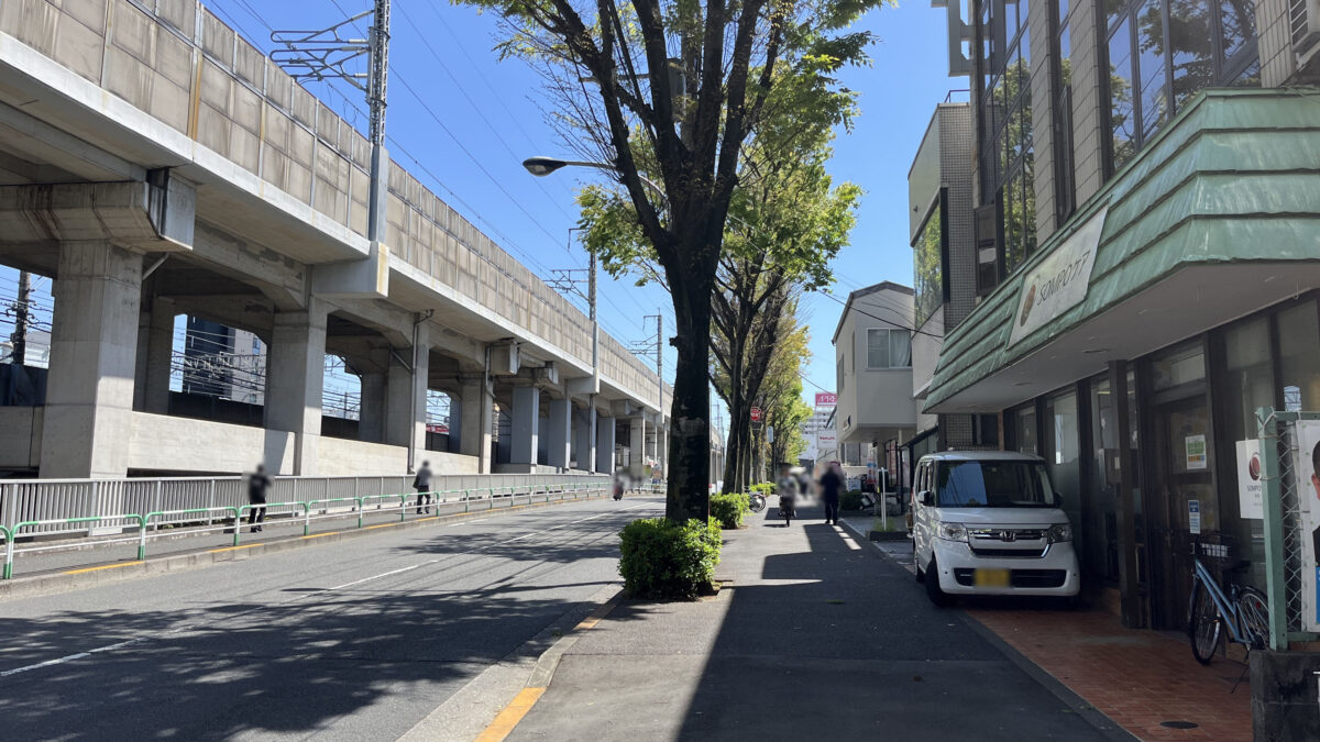 右は赤羽駅方面。近くには「ヤクルト 赤羽センター」があります。