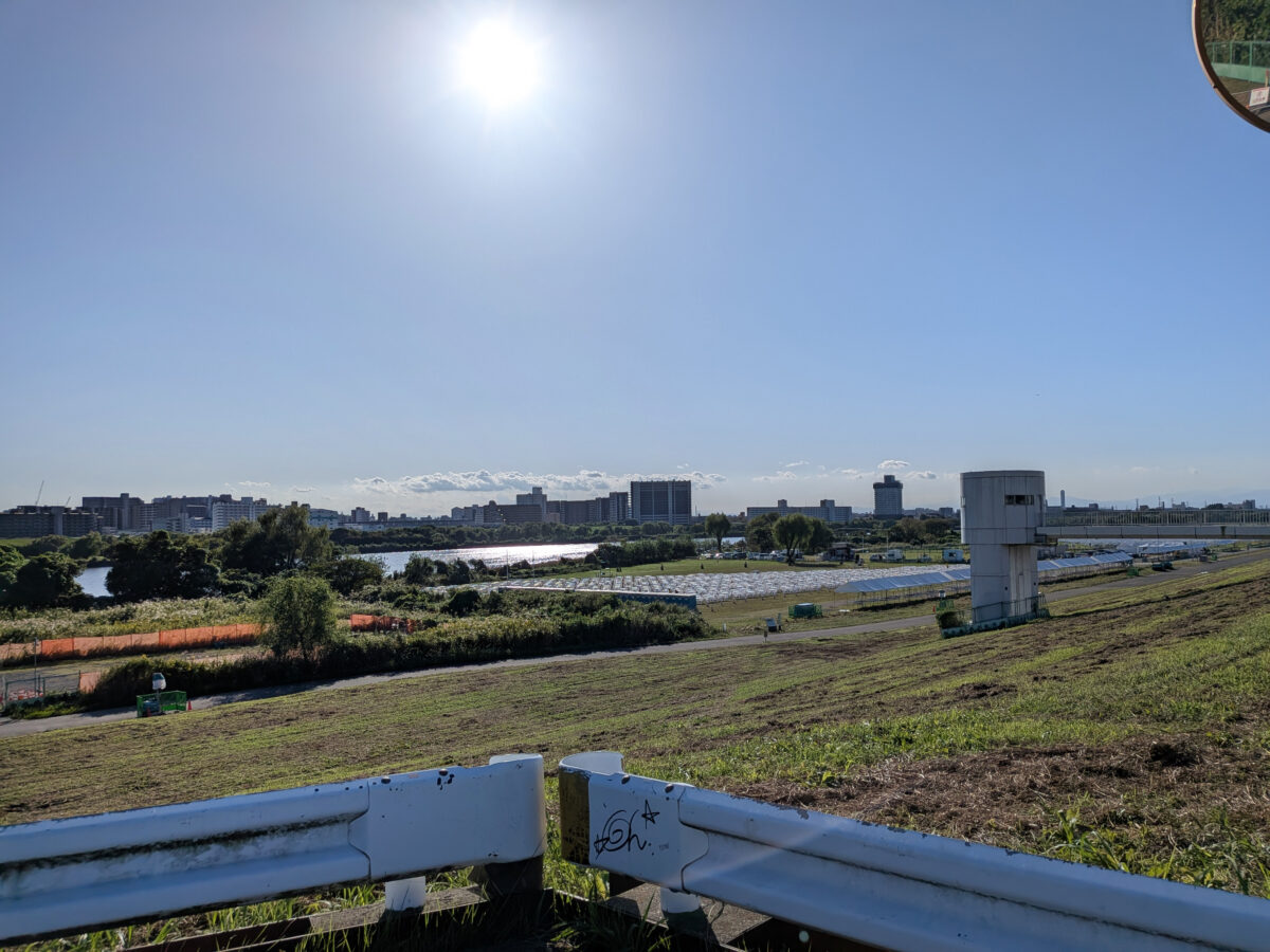 飛鳥ドライビングカレッジの前を通って荒川土手へ。