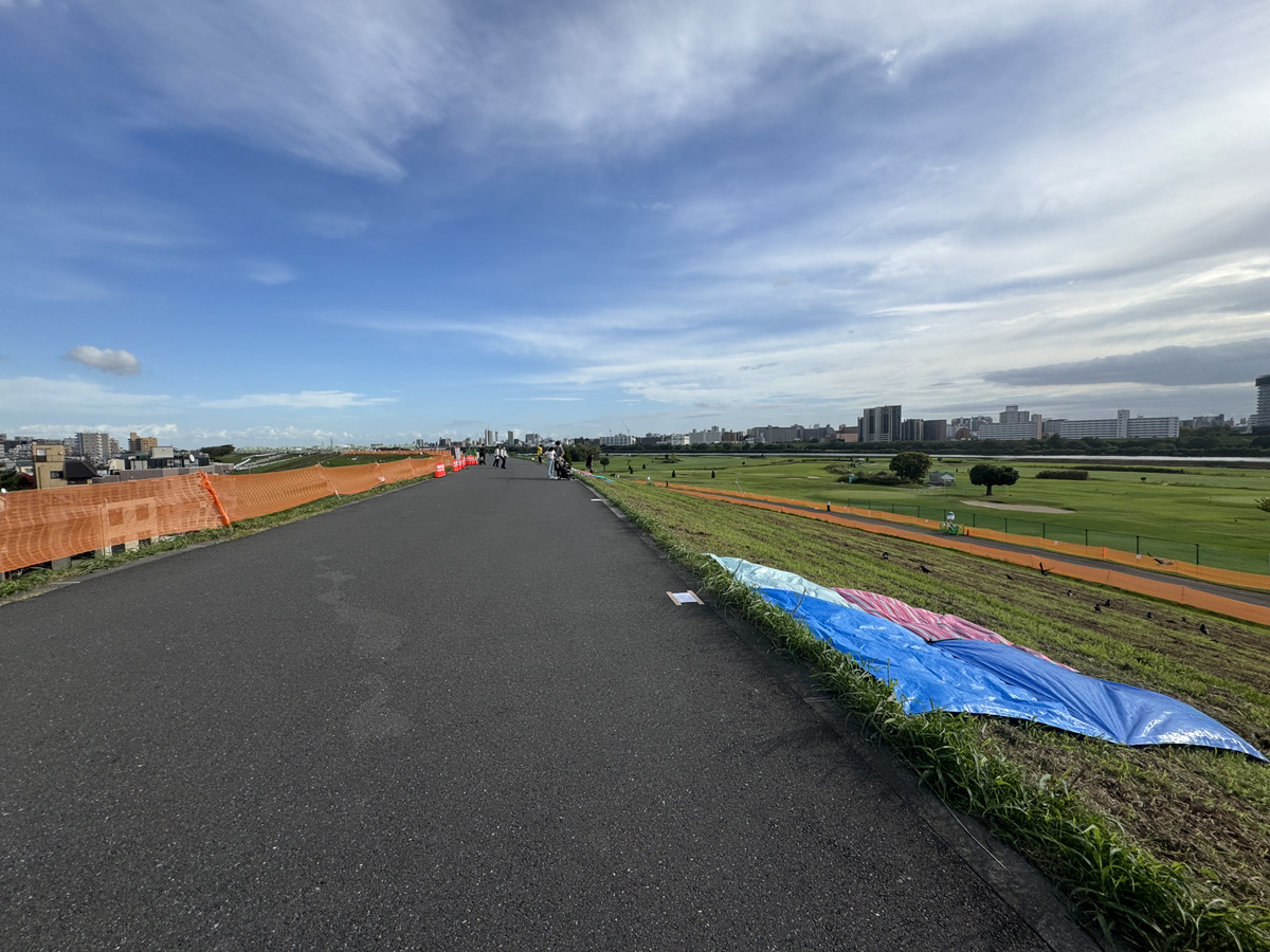 川口花火大会、無料席の13時頃の様子です。花火打ち上げ場所の近く側は埋まりだしてる。 浮間ゴルフの近くにある浮間ゴルフゲートから無料席へ。 去年よりも人が多い気...