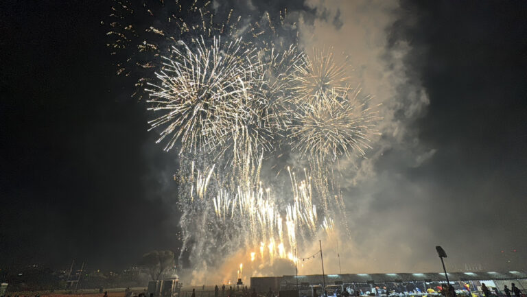 「第5回川口花火大会」の様子。11,100発の圧巻の花火に感動♪ダイナミックな花火と音楽でした。編集員が見た有料席B席からの眺めをお届けします♪ 17時56分頃、会場の照明が落ちていよいよかと盛り上が...