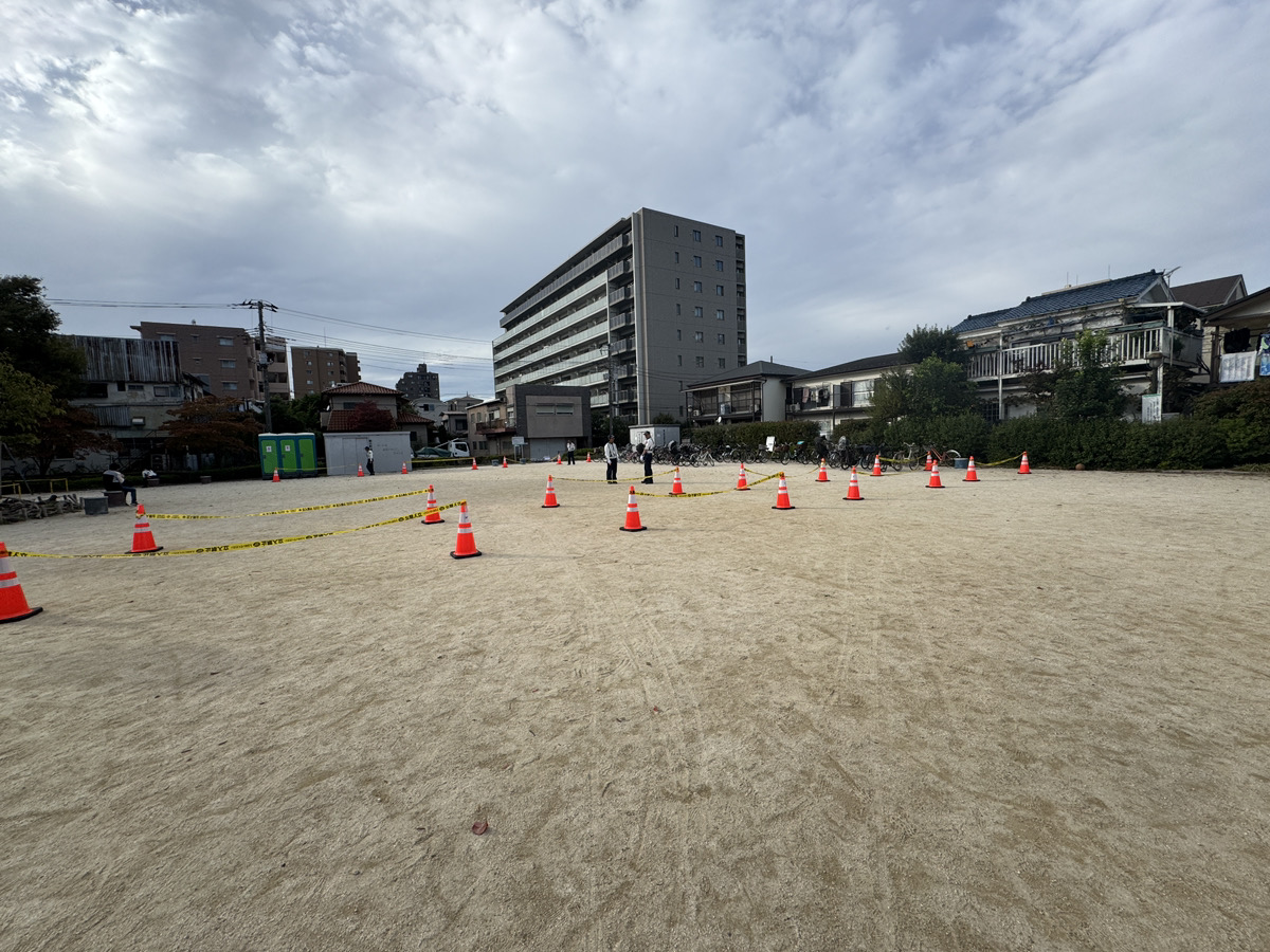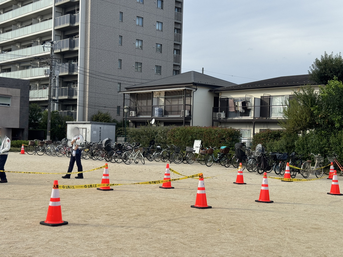 15時頃、飯塚3丁目公園臨時駐輪場の様子です。