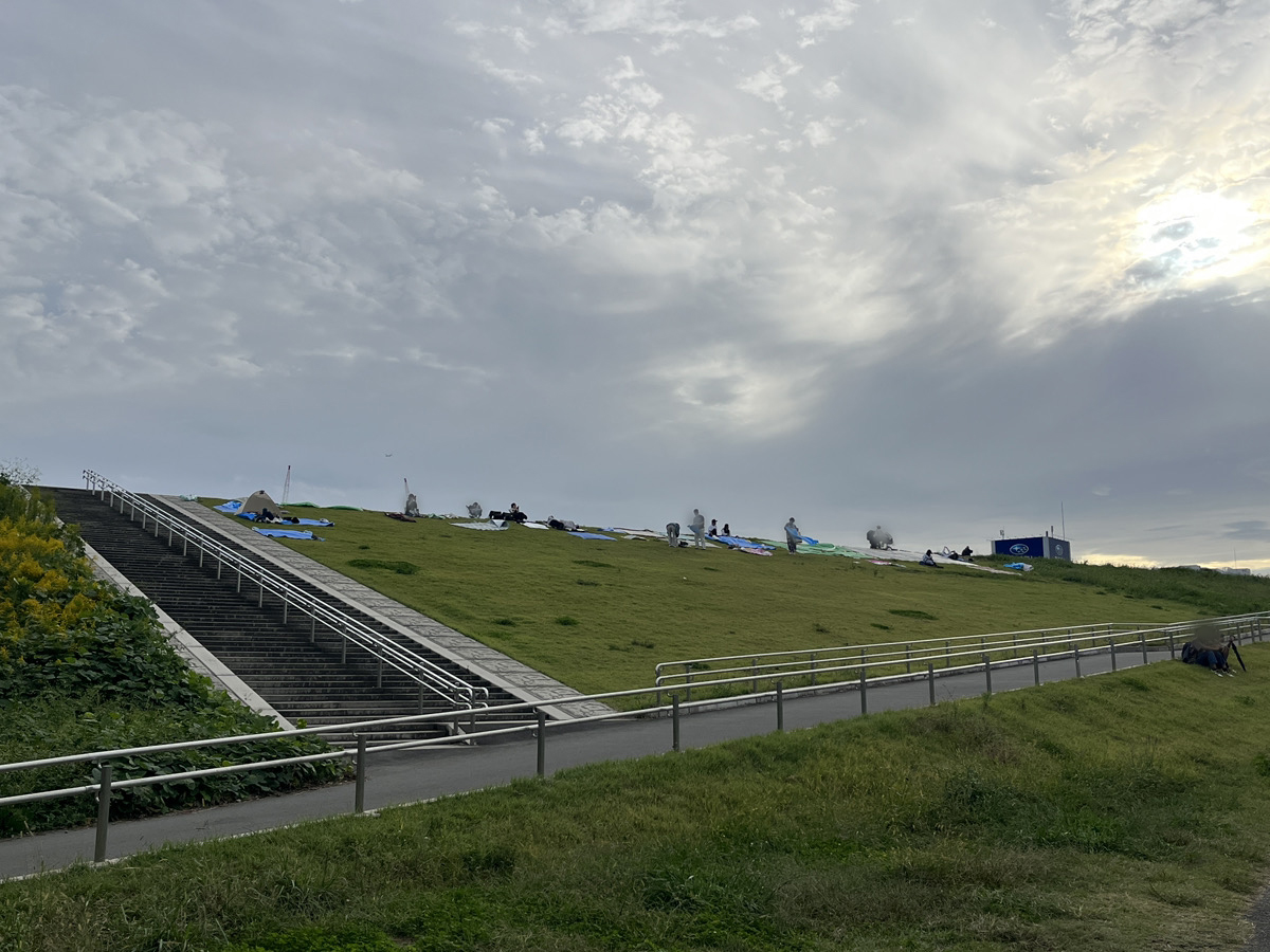 南中前の荒川土手 17時30分頃の様子。 16時頃と比べると一気に人が増えました。 上のあたりは埋まり始めています。 どんどん人が多く入って来ており、かなり賑わってま...