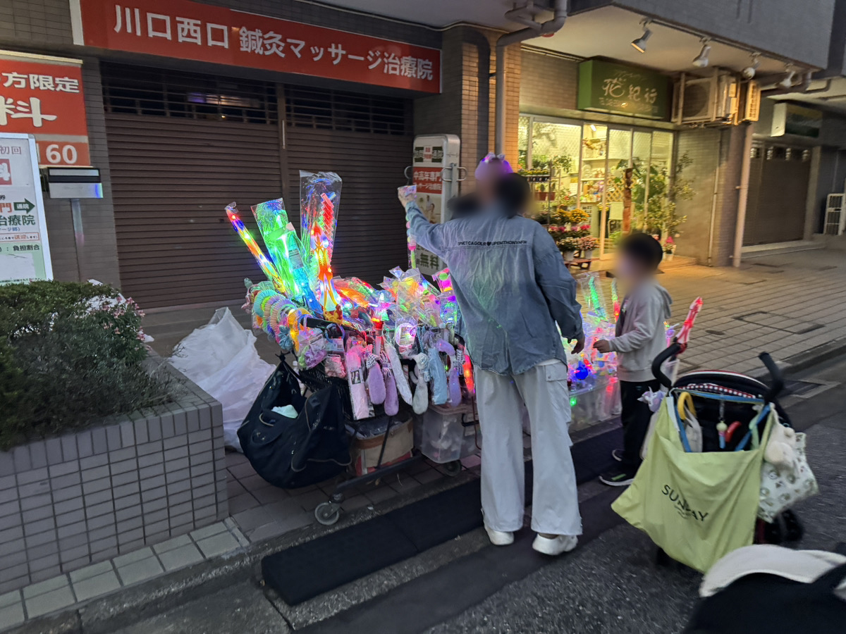 川口駅西口から花火会場へ向かう道中の様子。17時15分前後。 キッチンカー並んでいるところはすごい行列 光るアイテムも売ってる! https://kawaguchi-magazine.com/arc...