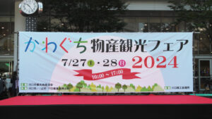 キュポラ広場で7月26日(土)・27(日)に開催される「かわぐち物産観光フェア2024」に行ってきたよ! 初日26日(土)の10時半頃の様子です♪ 10時前に通りがかった時の駅ロー...
