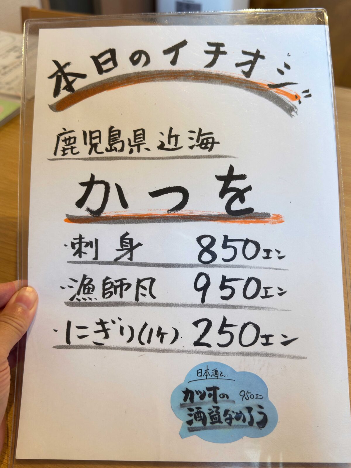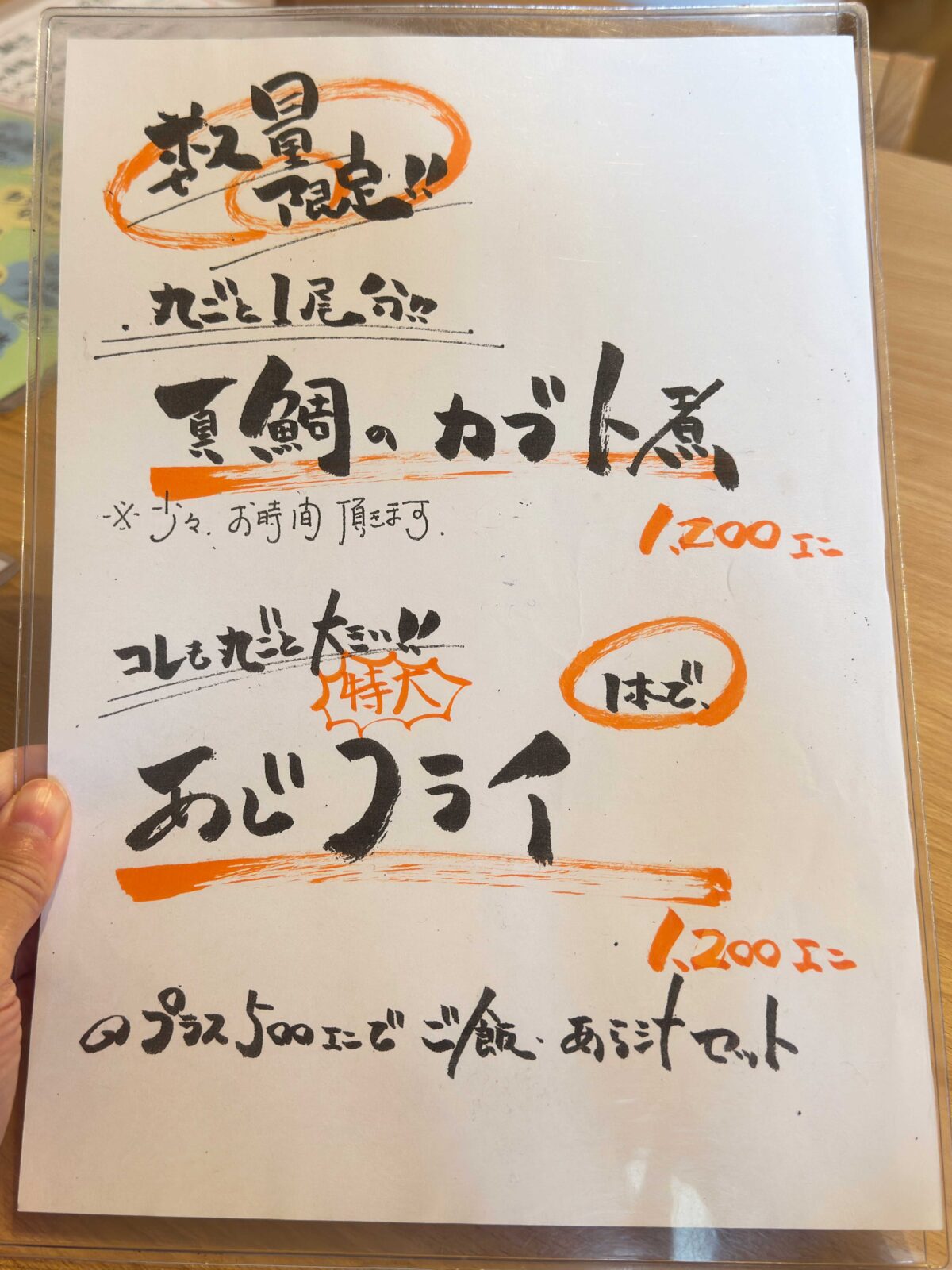 この日のイチオシ”かつを”や、数量限定・真鯛のカブト煮や、特大アジフライも気になるぞ。