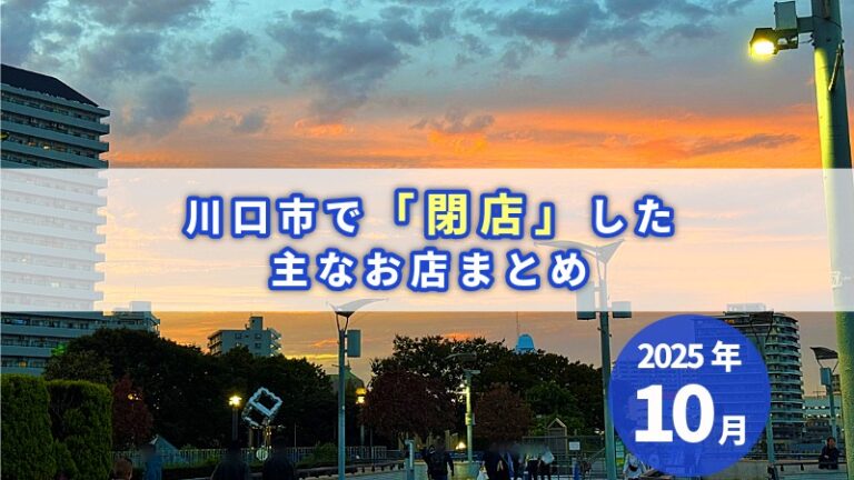 川口市で10月に「閉店」した主なお店まとめ川口市で10月に閉店した主なお店をまとめてみました。 ※川口マガジンで記事にでてきたものを掲載してい...