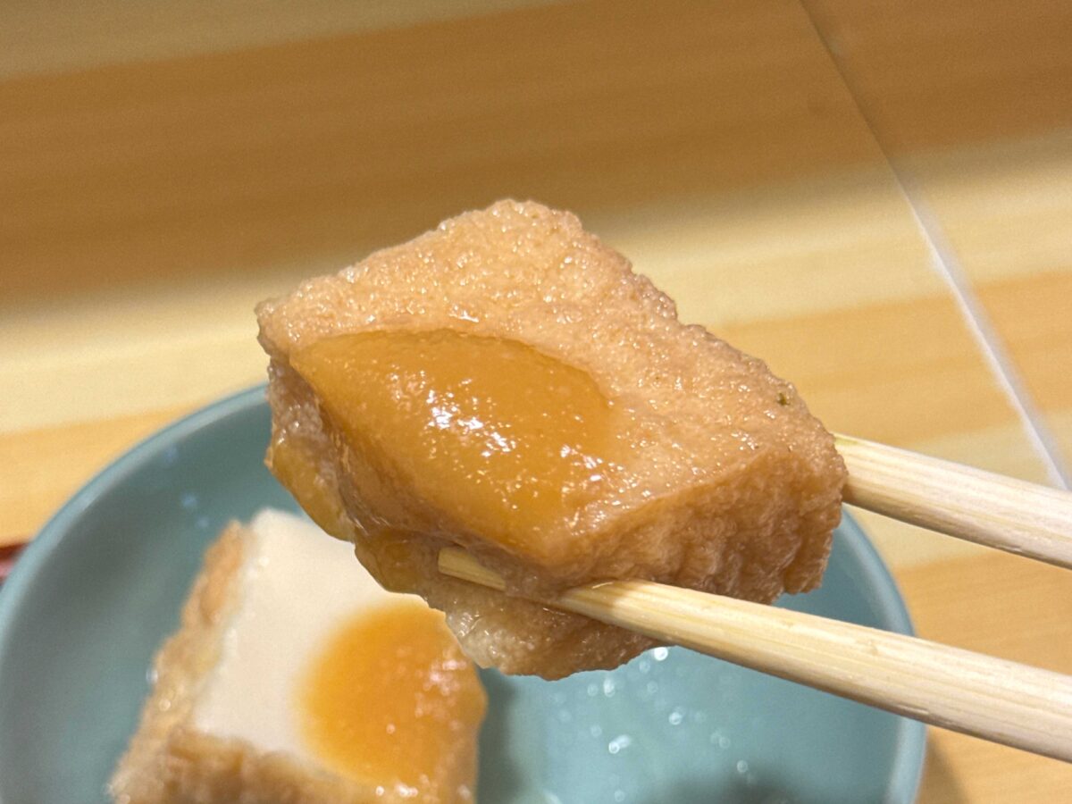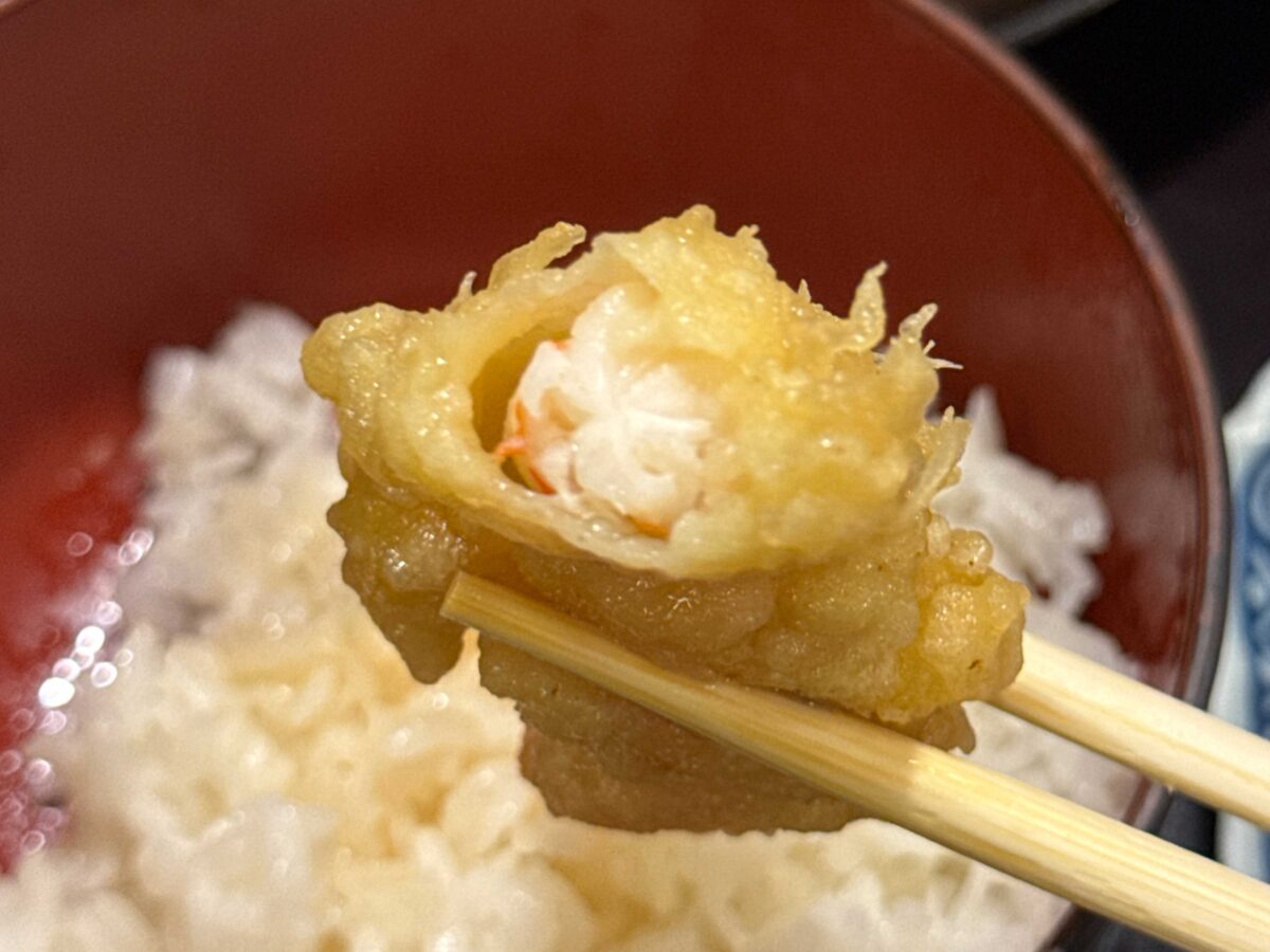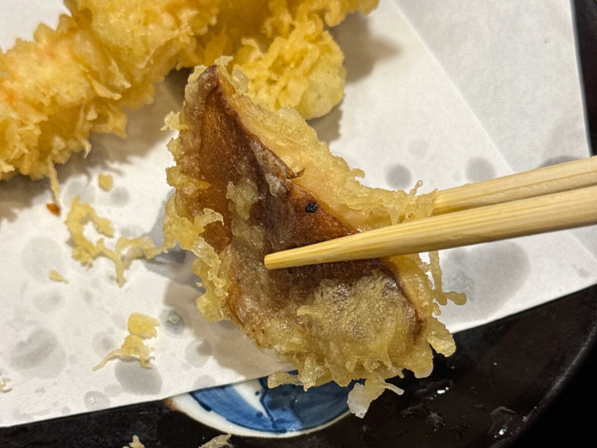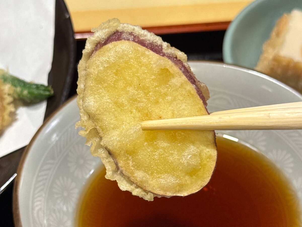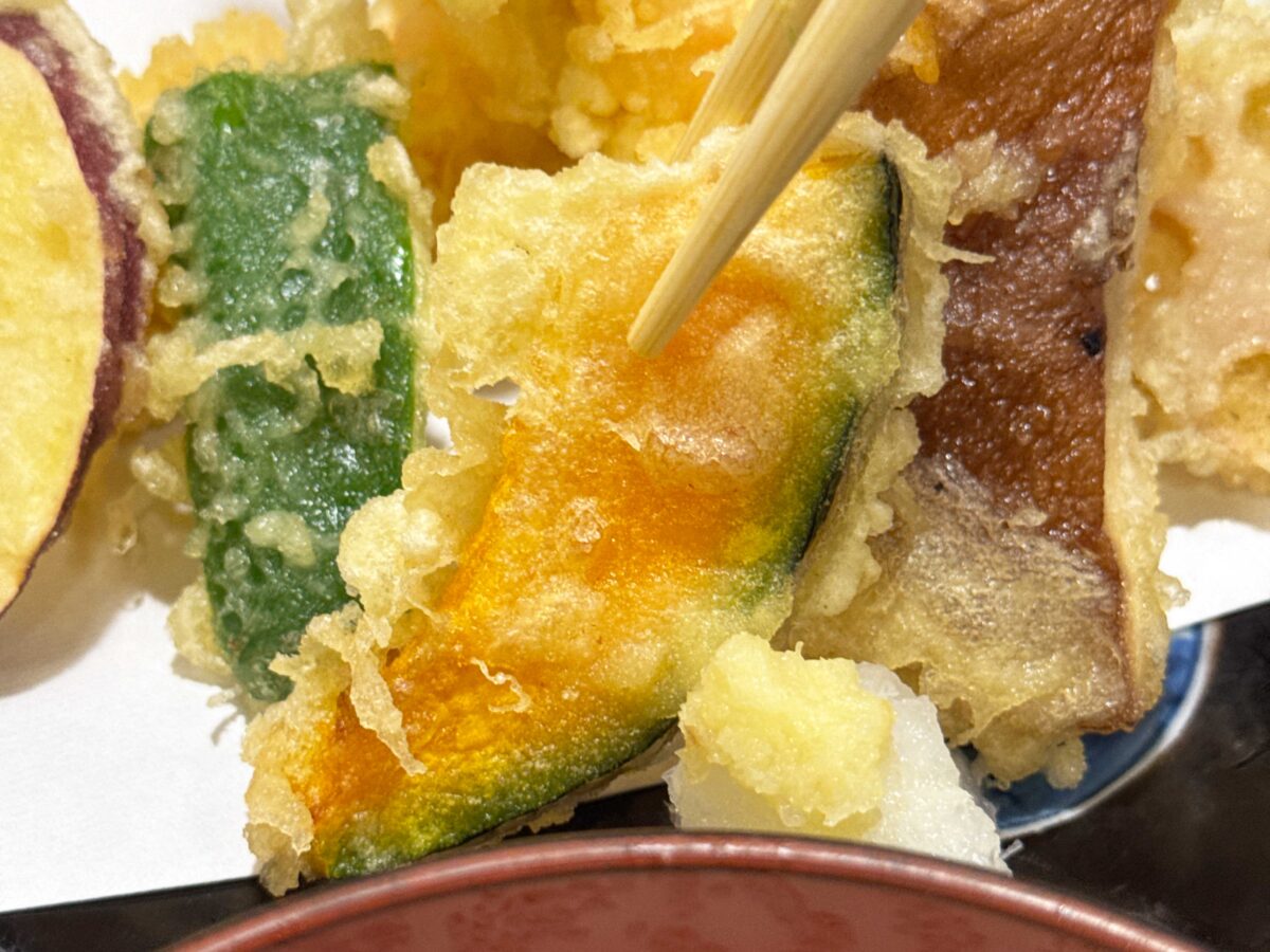 サクッとカラッと揚がった薄付きの衣、そしてホックホクのかぼちゃ。どちらも店主の技を感じさせる仕上がり!