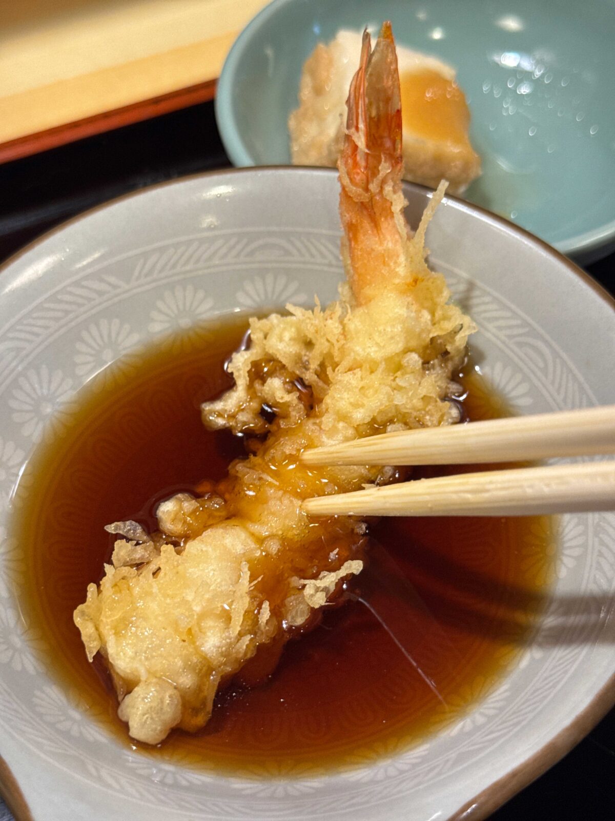 さて、天ぷらに戻りまして。わわっ!海老が2本あるではないか!嬉しい〜^^