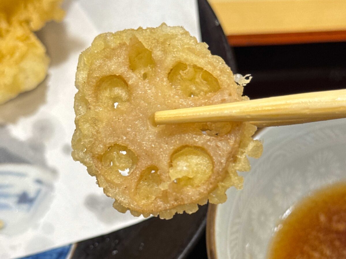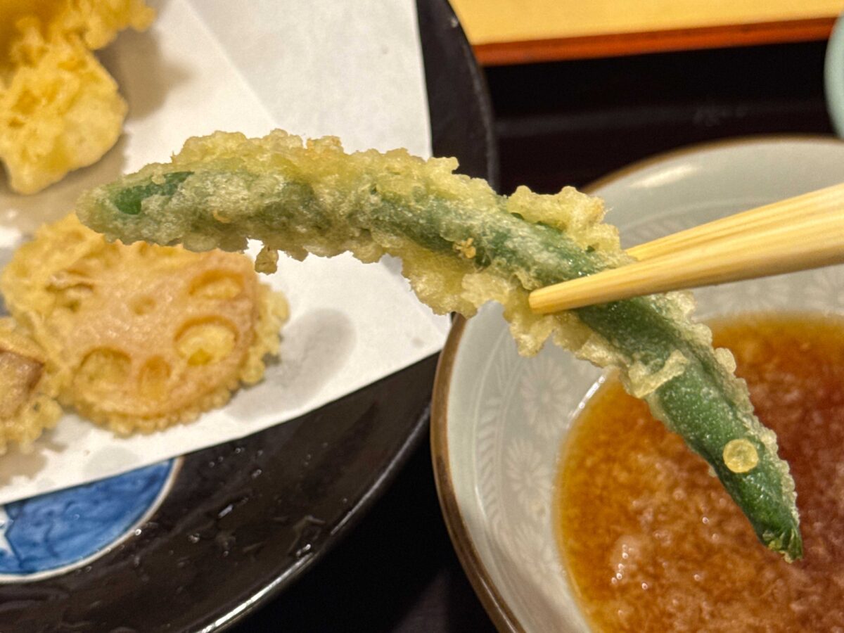 天ぷらは、まだまだ続く。いんげん、れんこん、