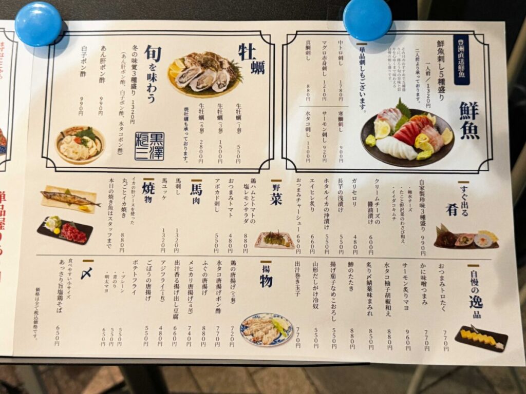 店頭のメニュー表を見てみると、お魚メニューが目立っていて、魚系が主役の居酒屋さんという印象!