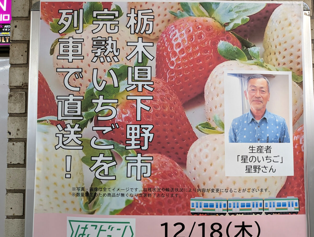 栃木県下野市産の完熟いちごを列車で直送!