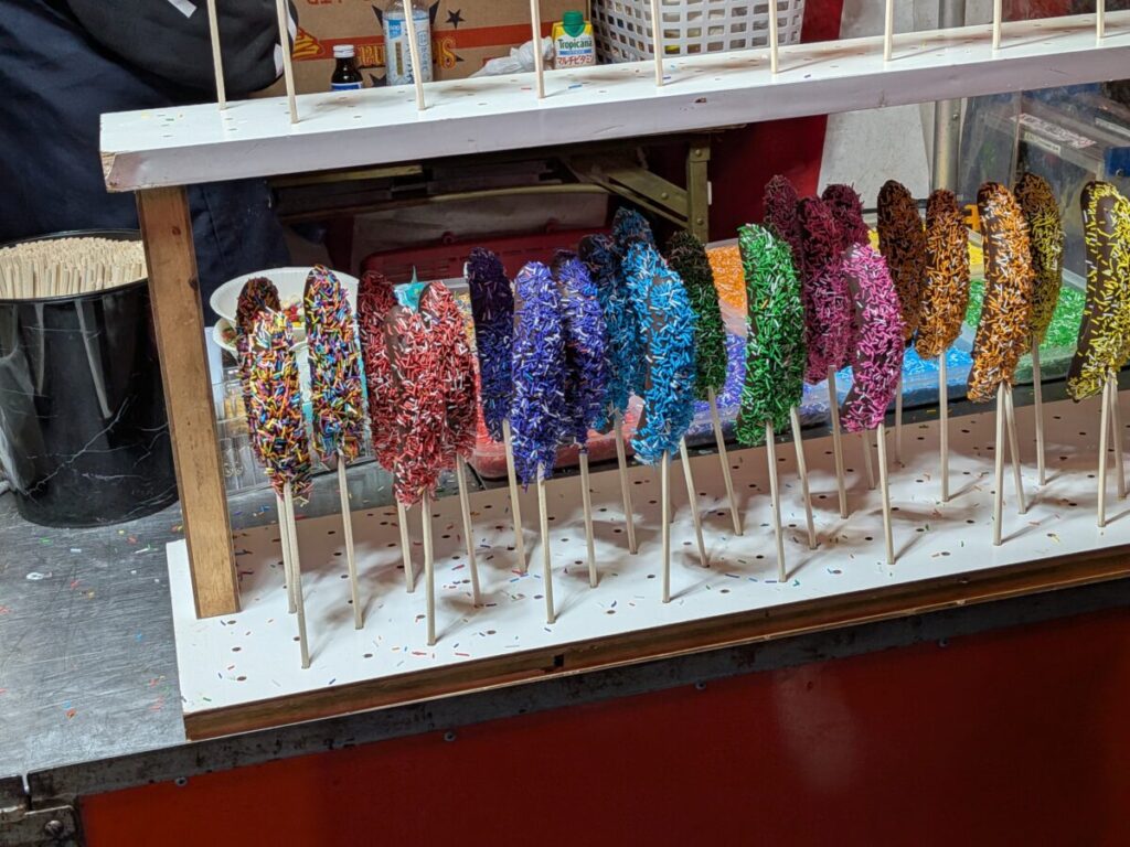 一緒に行ったちびっこ編集員、さっそくチョコバナナに目を付けます。わかった、一本買うよ。