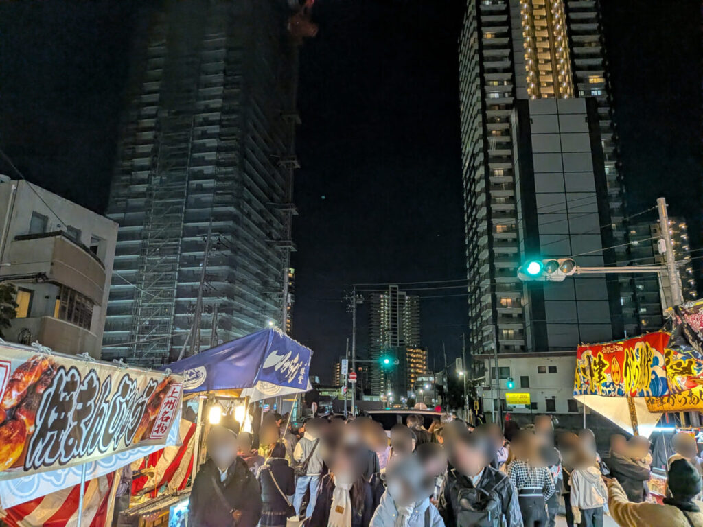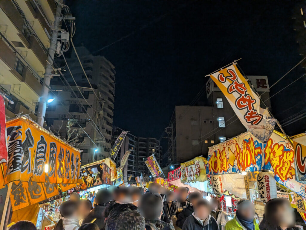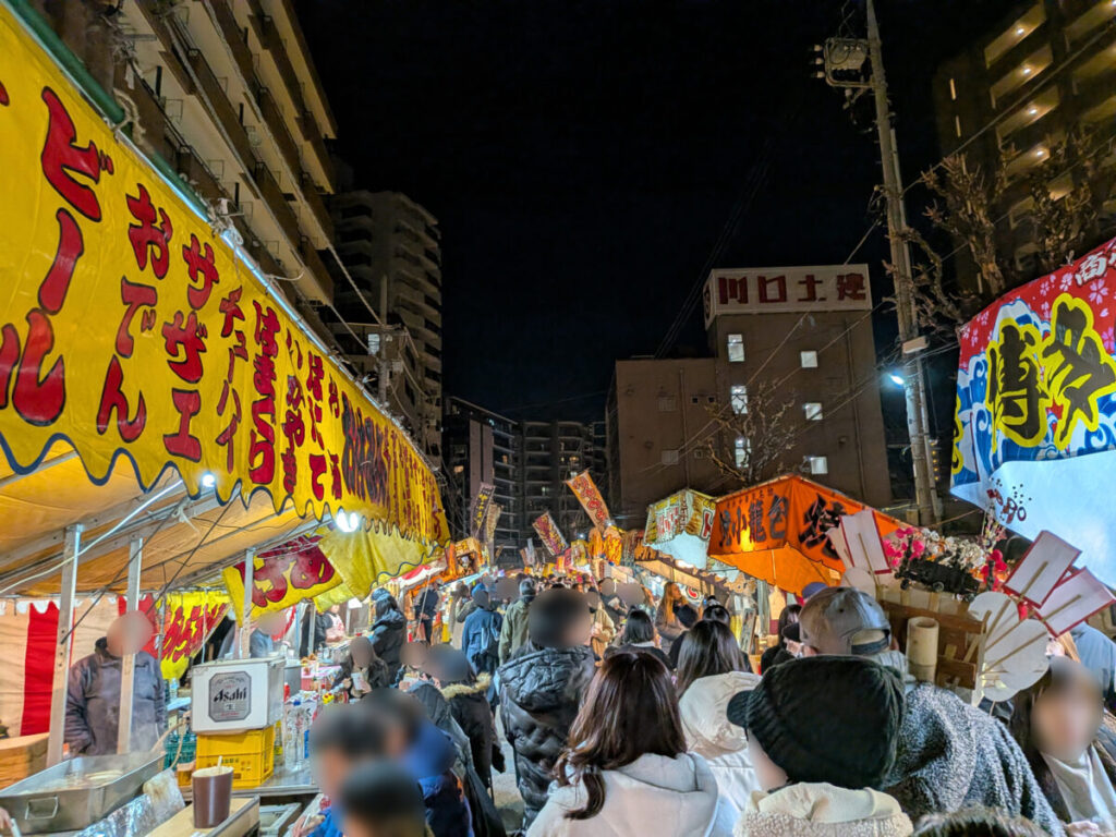 本日12月15日開催された「川口神社おかめ市」、夜19時すぎの様子です。