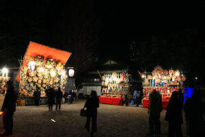 川口駅西口の飯塚氷川神社のおかめ市、19時前後の様子です。
