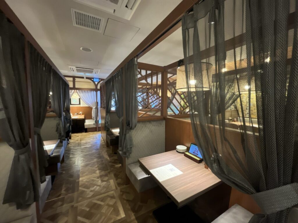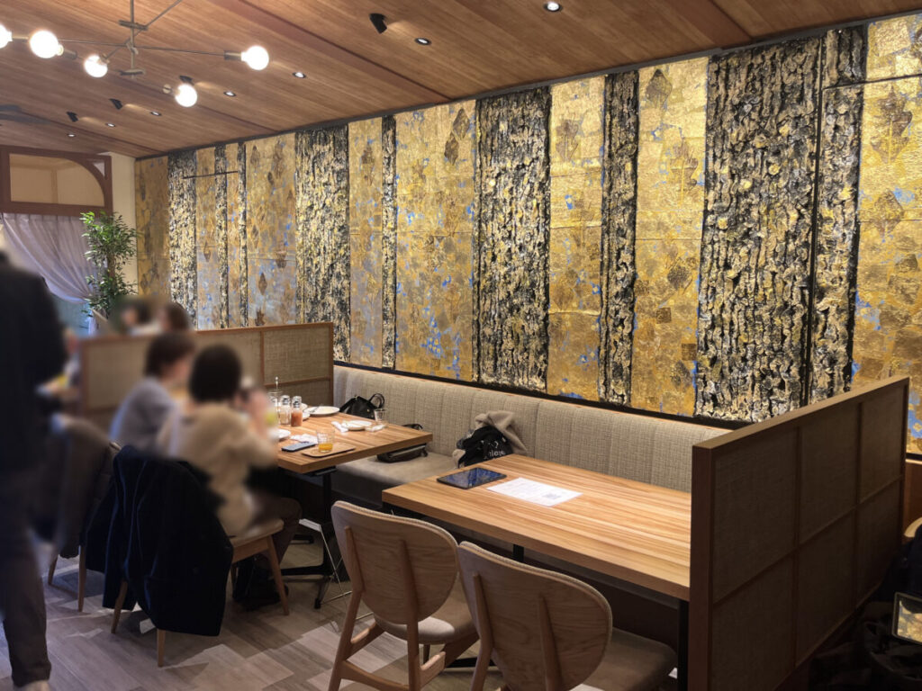 さらにその奥には壁面のアートがとってもきらびやかなお席♪
