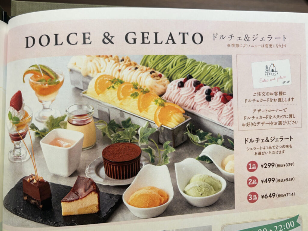 そしてドルチェ&デザートは、1品~3品を選んで注文できます。