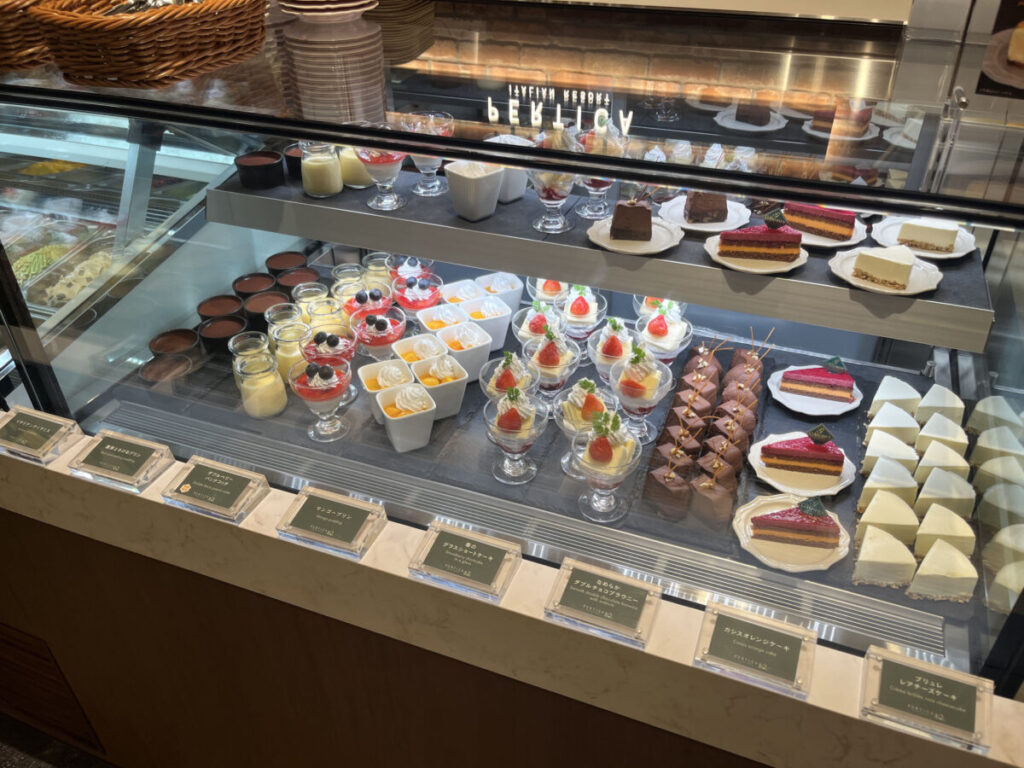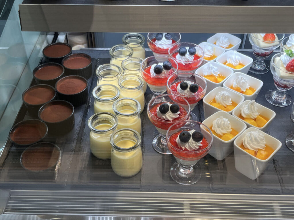 右側のショーケースにはケーキやプリンが!