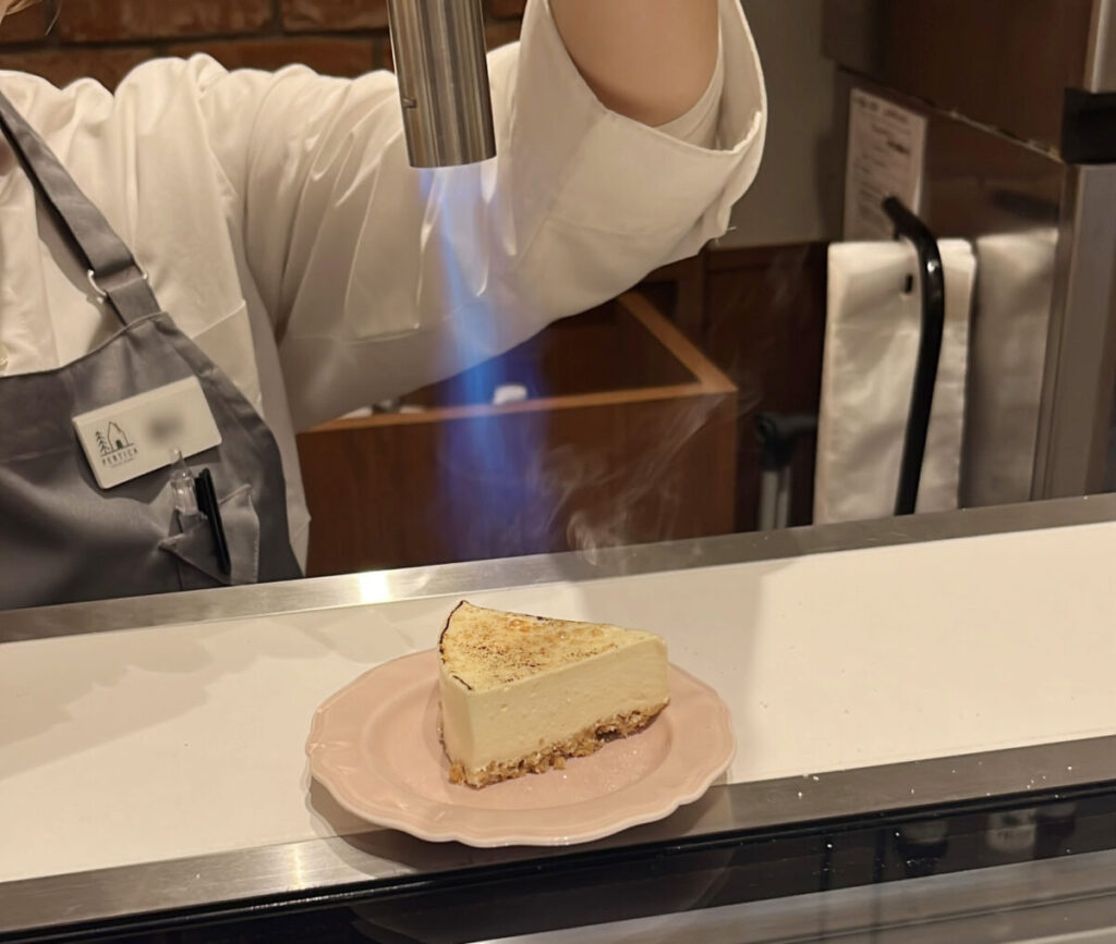 こちらのレアチーズケーキは、注文するとその場でブリュレしてくれるんですよ!!