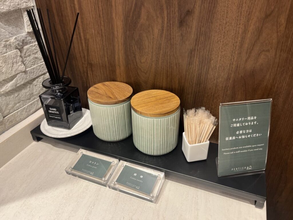 ちょっとお化粧直ししたいときに、綿棒とかコットンが置いてあるなんて、本当に助かりますね。