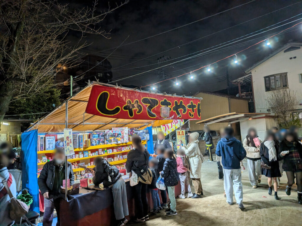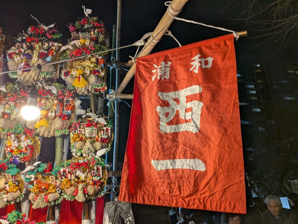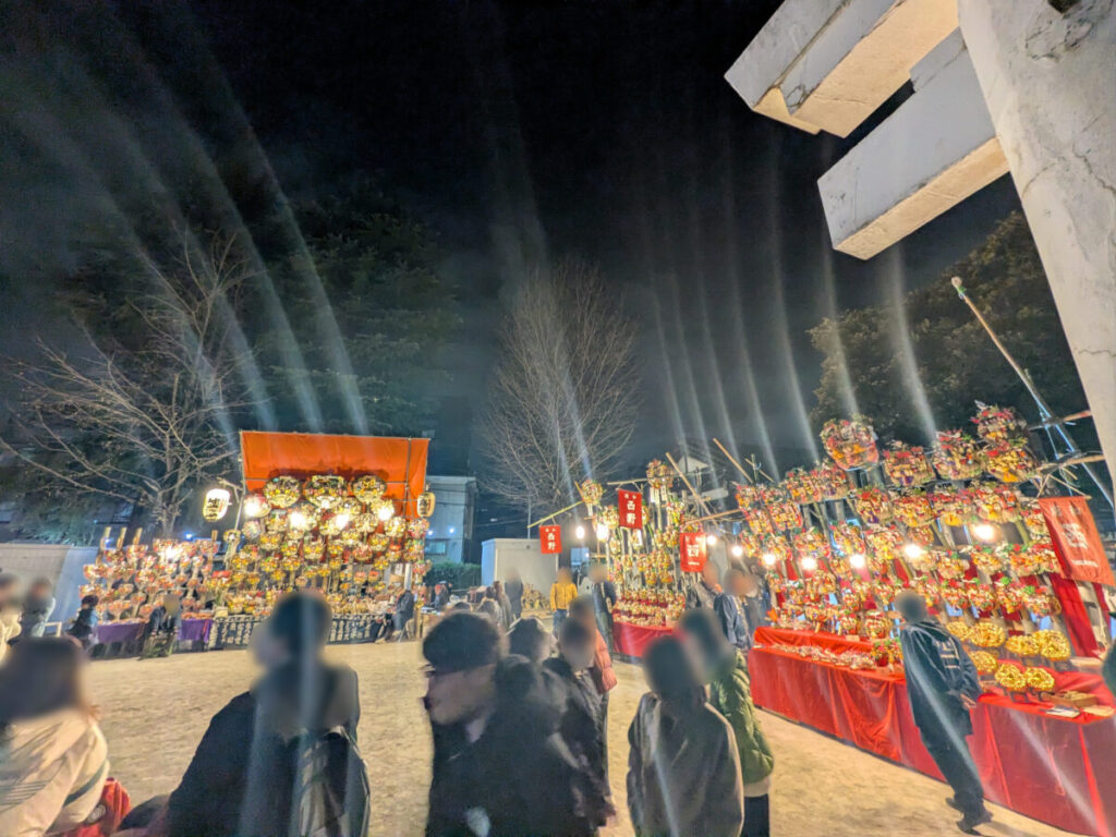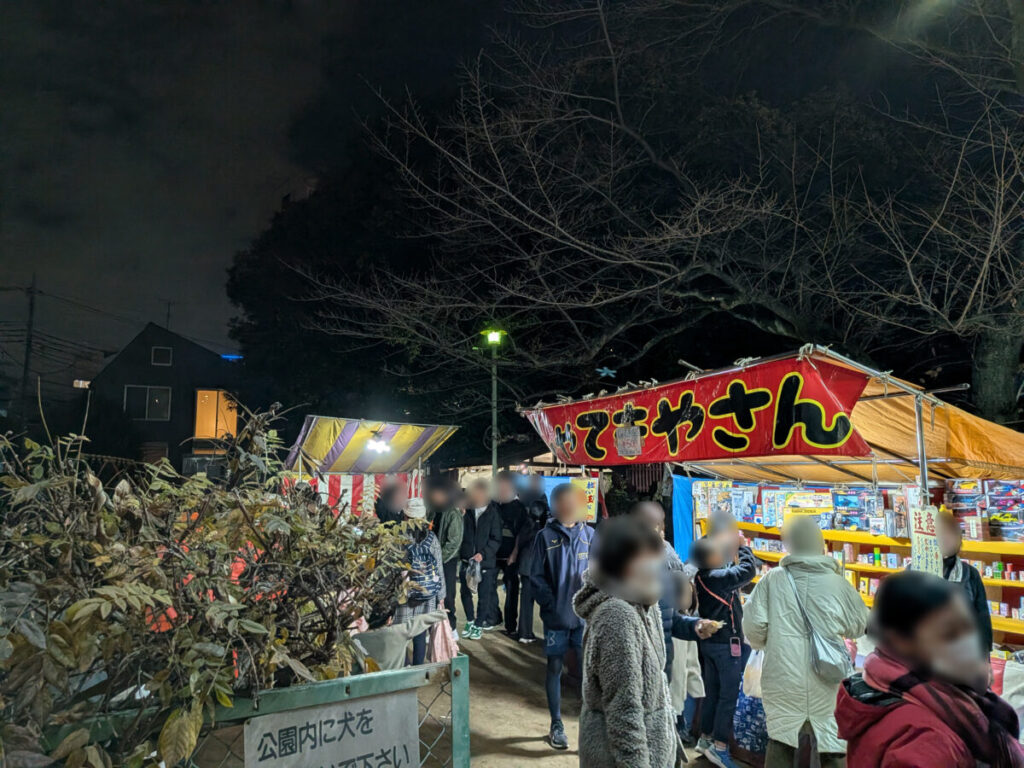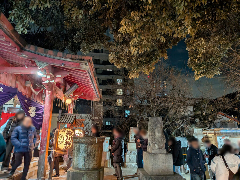 12月19日、川口駅西口の飯塚氷川神社の熊手市、19時前後の様子です。