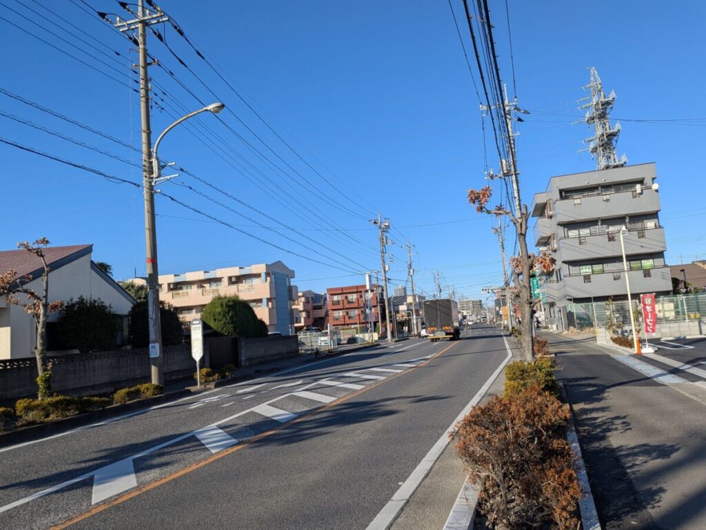 お店を背にして右はこんな感じ。こっちに進んで北大通りを渡ると「和食処 とんでん 戸田新曽店」があります。