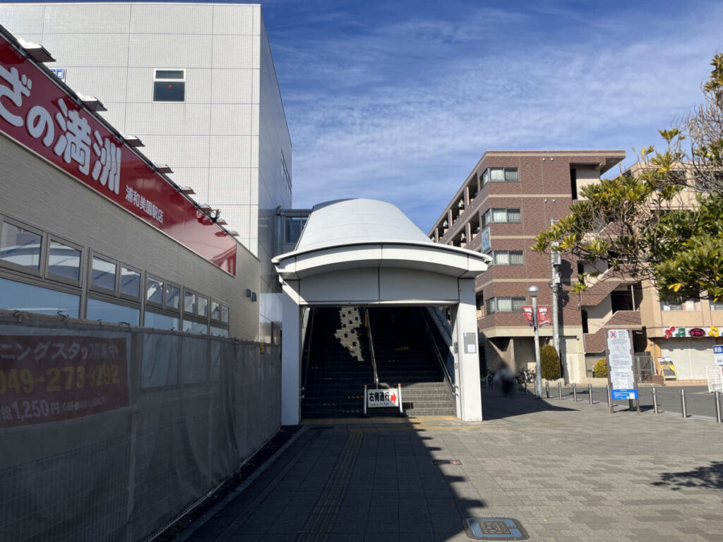 左です。すぐに浦和美園駅3番出口の階段があります。
