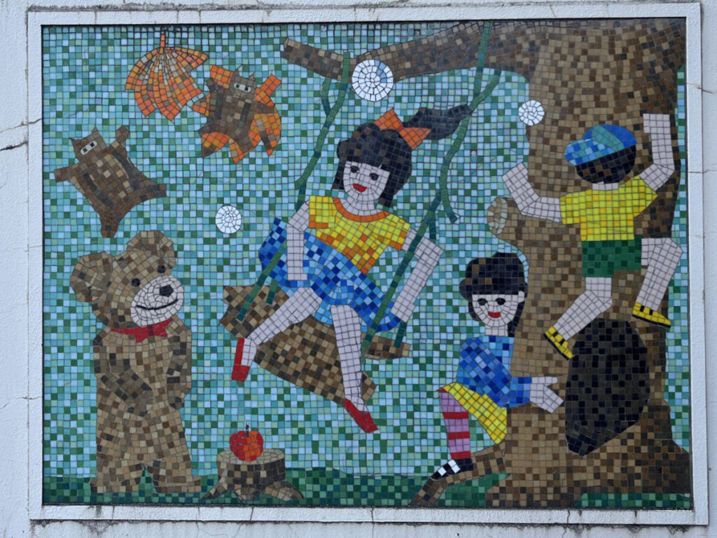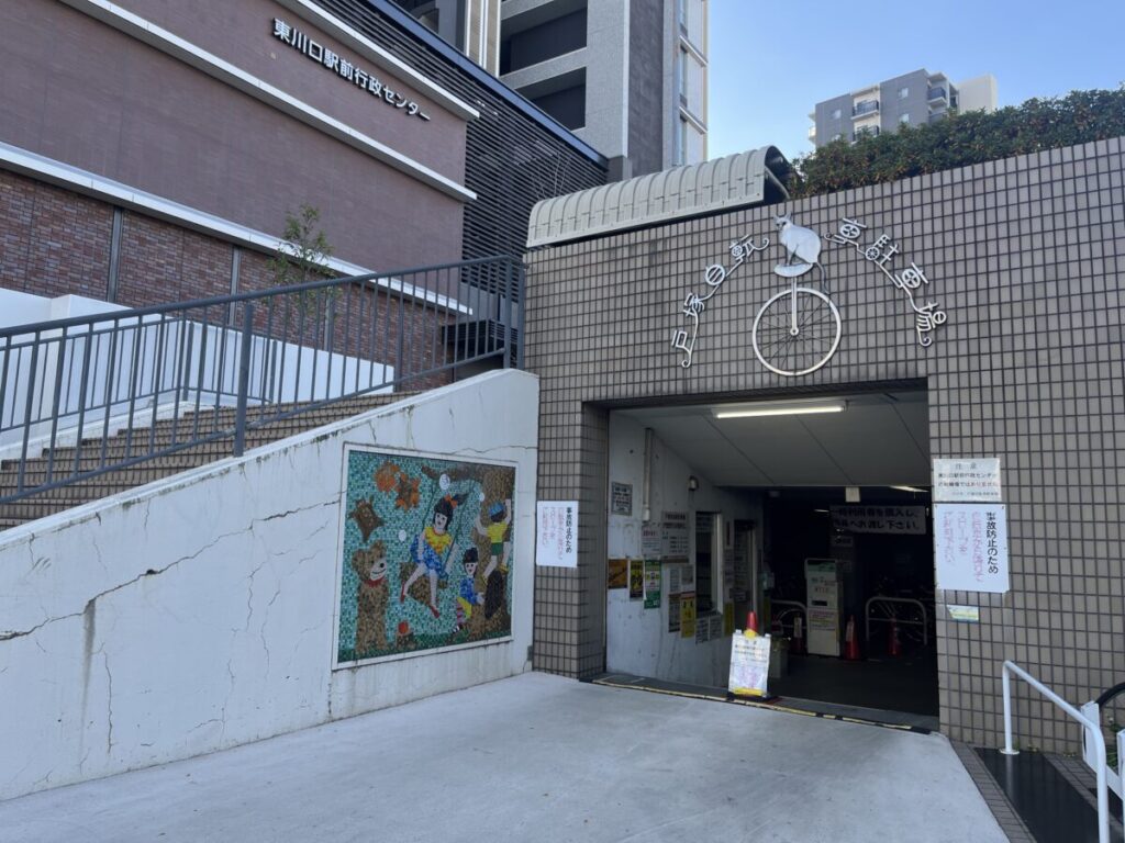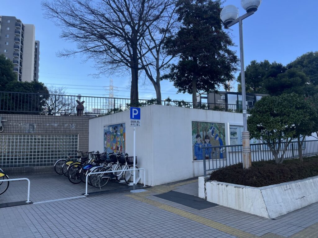 この絵があるのは、東川口駅・南側にある駐輪場の入り口横。