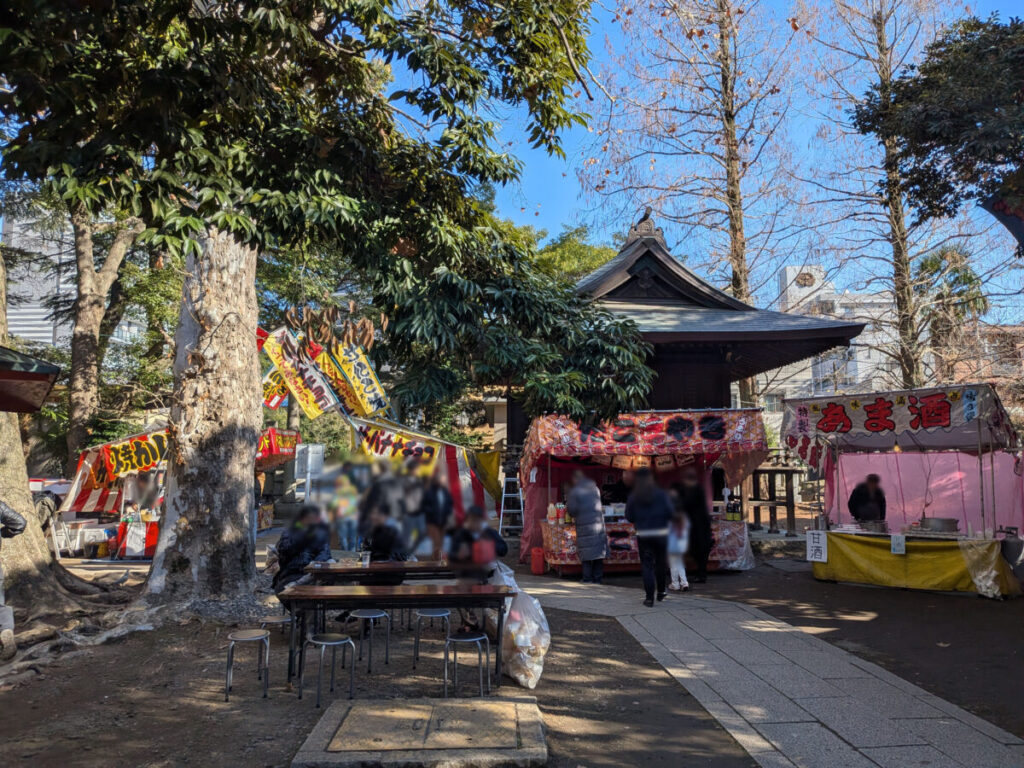 境内には机と椅子が置いてあって、のんびりお酒を楽しむ方々も。