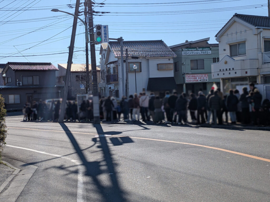 オートレース場の前の道まで、たぶん500人近くは並んでる。