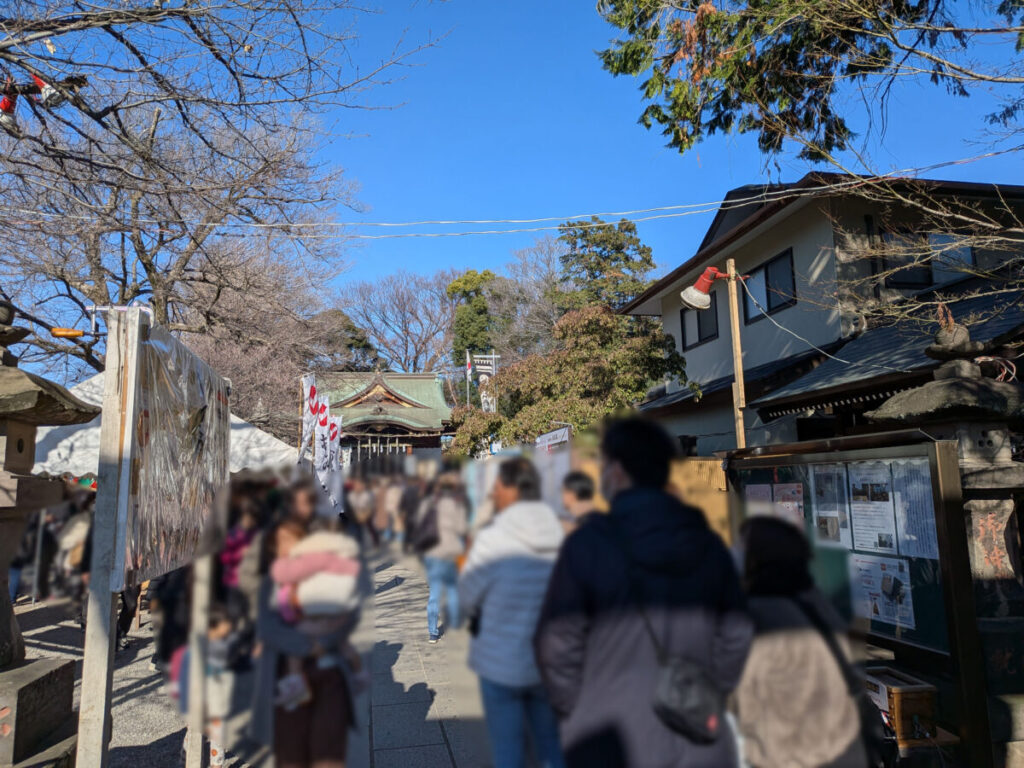 あけましておめでとうございます! 元旦5時の鎮守氷川神社の様子をお届けします。 神社の前にはやきそば屋さんの看板。玉こんにゃくや、甘酒ののぼりも! お正月だなあ...