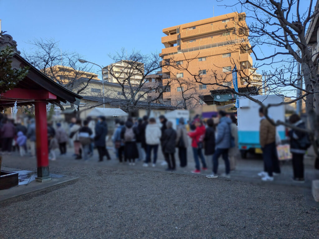 鳩ヶ谷氷川神社もハンパない行列!ざっと400人くらい?!鳩ヶ谷氷川神社も、ハンパない行列ですよ。 13時40分ごろの様子↓ まだまだ列は続きます。 こちらが最後...