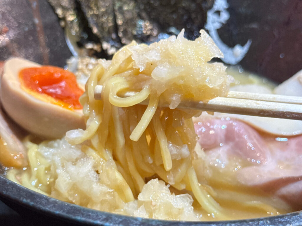 さあ、最後にたっぷり乗っかった玉ねぎとともに、麺を口の中いっぱいにすする!