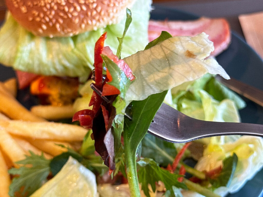 主役のハンバーガーにいくまえに、心を落ち着かせるためサラダをば。