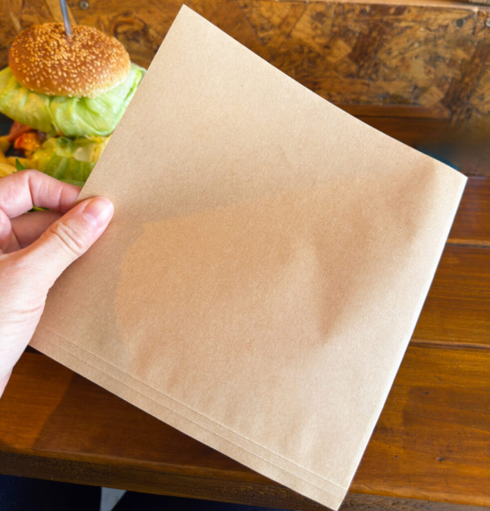 それをバーガー袋に入れる!準備は整った!それでは、人目も気にせず大口開けて豪快に喰らいつく!