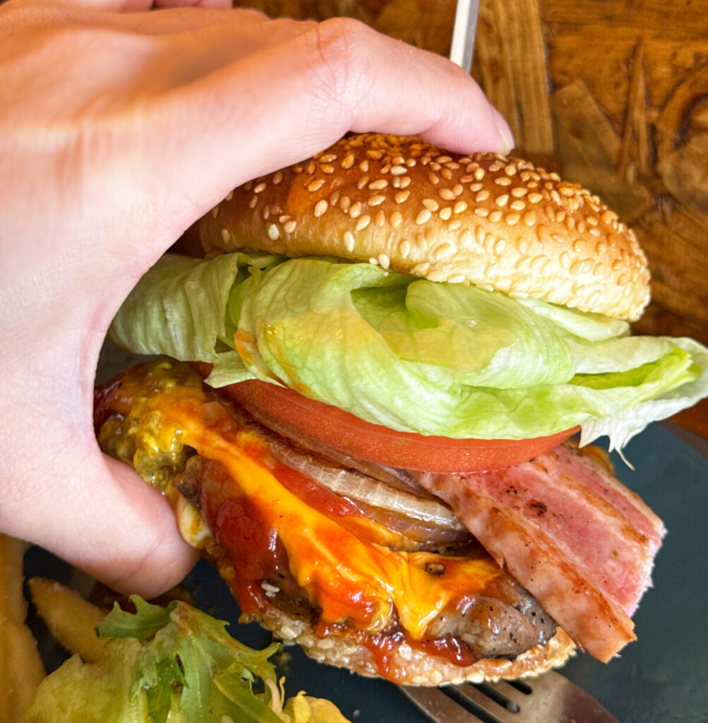 今回は芝宮根町にある「SICKLY Delicious Burger cafe」で、『ベーコンチーズハンバーガー』に喰らいついてきましたよ!お邪魔したのは1月4日。新年早々、アメリカンなハンバーガーを頬張れて元気出た〜!
