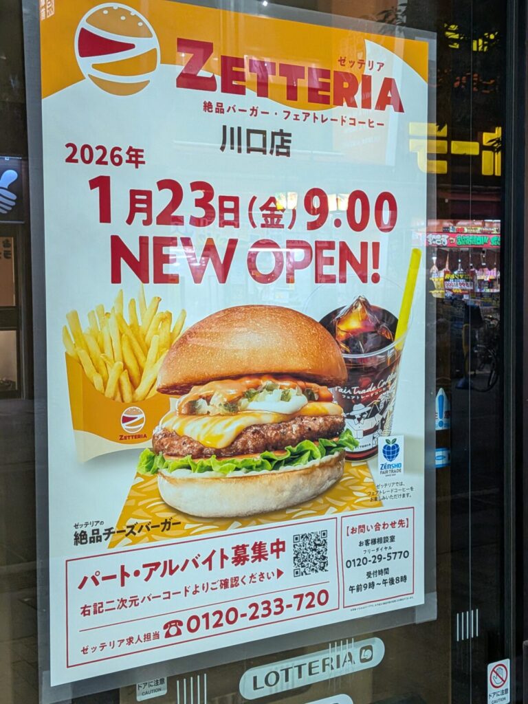 【川口市】樹モールプラザに「ゼッテリア」が新オープンするみたい。