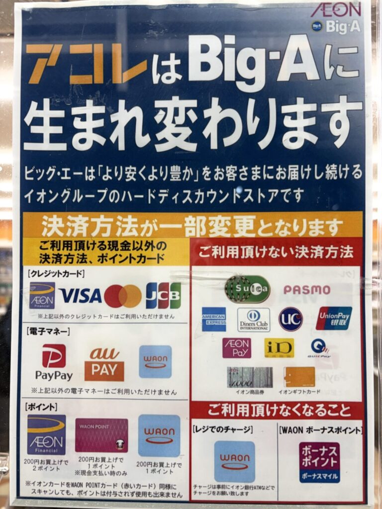 「アコレ」と「ビッグ・エー」が経営統合したことで、各地でビッグ・エーへのリニューアルが相次いでいますね。