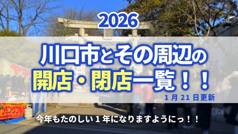 【2026】川口市とその周辺の開店・閉店一覧!*1月21日 更新2026年に川口市とその周辺で開店・閉店したお店を記録していきます。 川口マガジンに掲載した記事のまと...