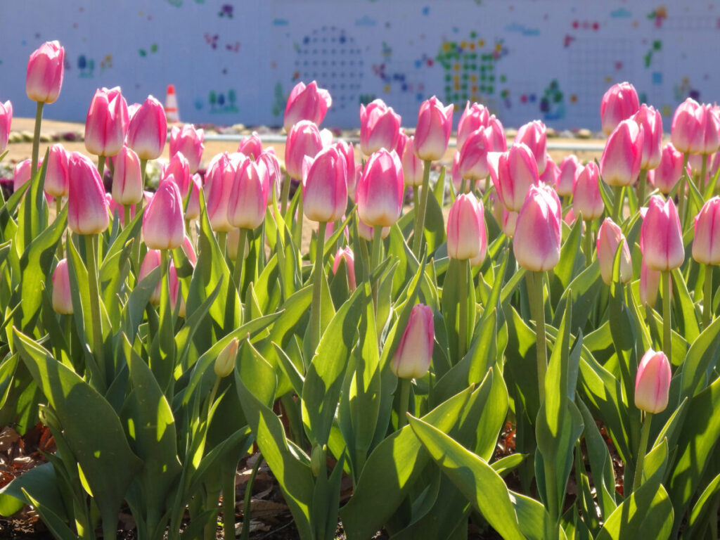 滝・大噴水前広場の花壇にチューリップを発見!