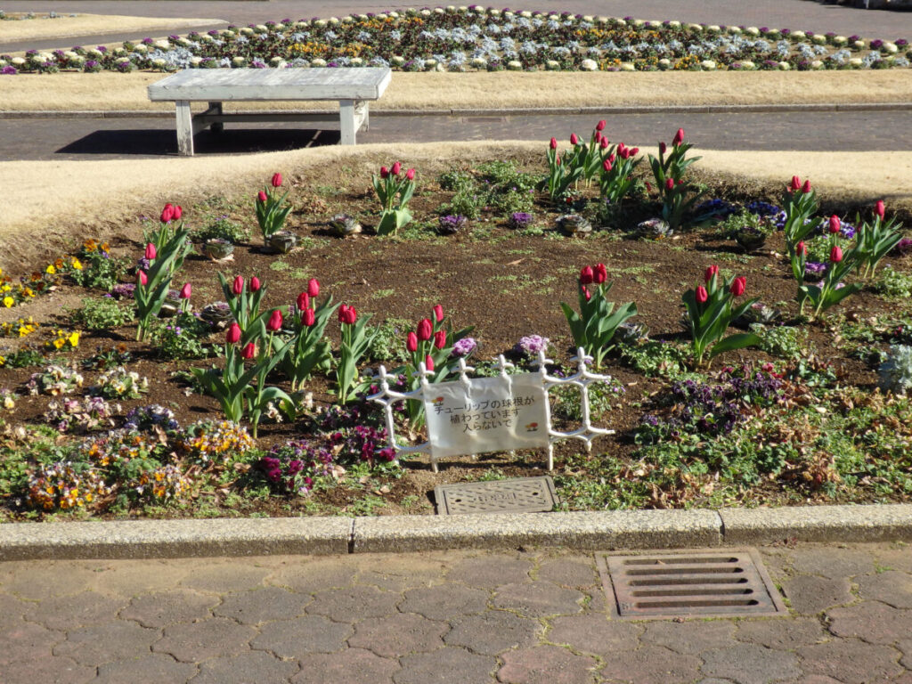 ちなみにまだ球根が開花していない花壇もありましたよ。