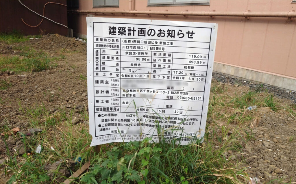 ちなみに更地時代に出ていた「建築計画のお知らせ」はこちら↓