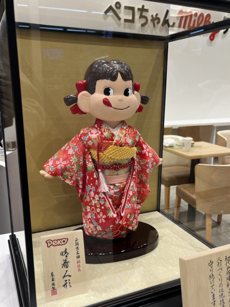 おおっ!レジの横には着物を身に着けたペコちゃん人形だ!!
