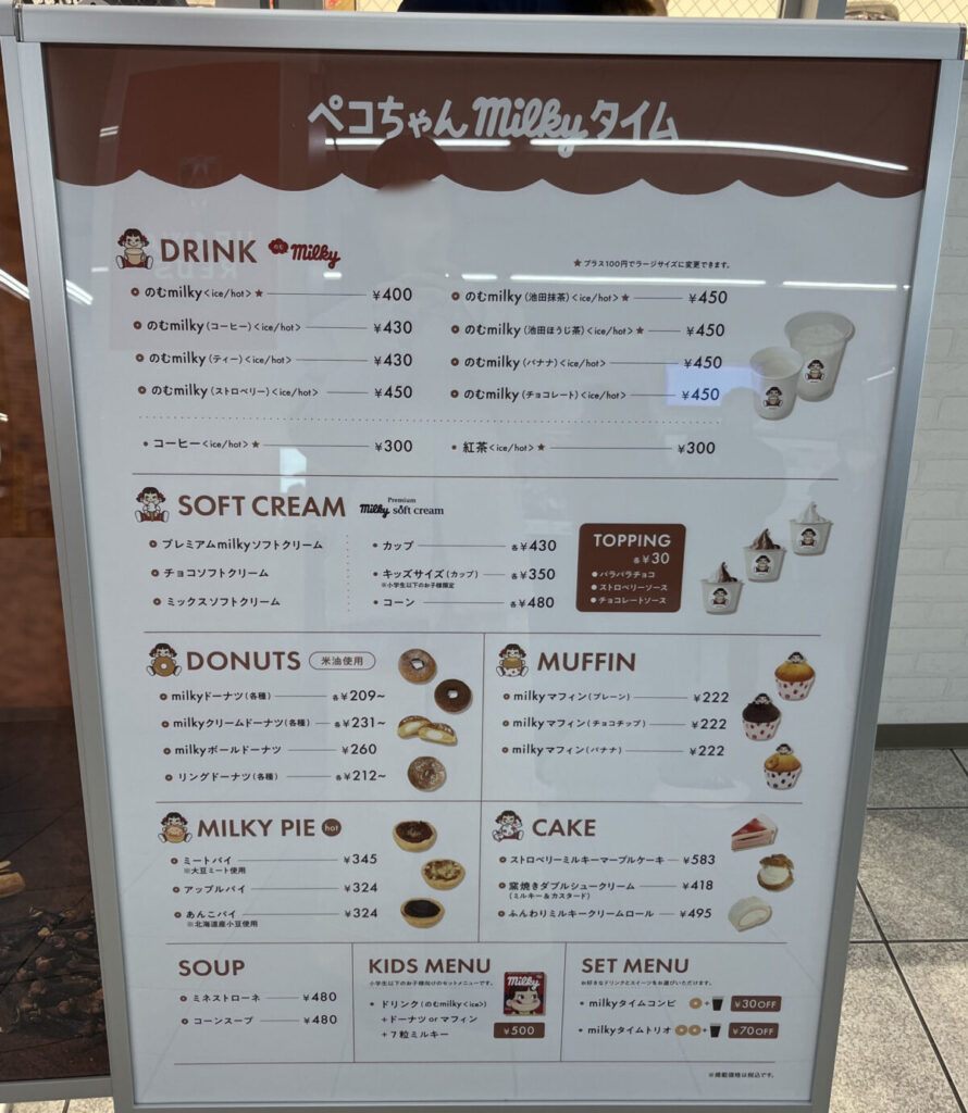 先ほどのショーケースにあった食べ物以外に、「のむmilky」なるドリンクや、ソフトクリームにスープもありますね!