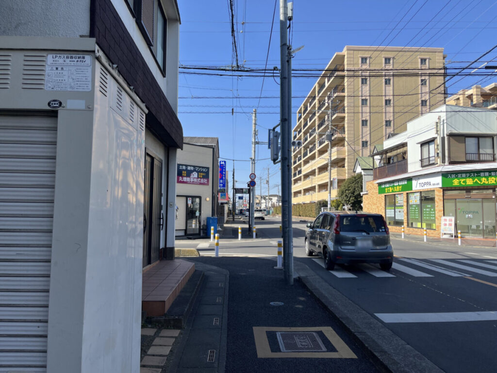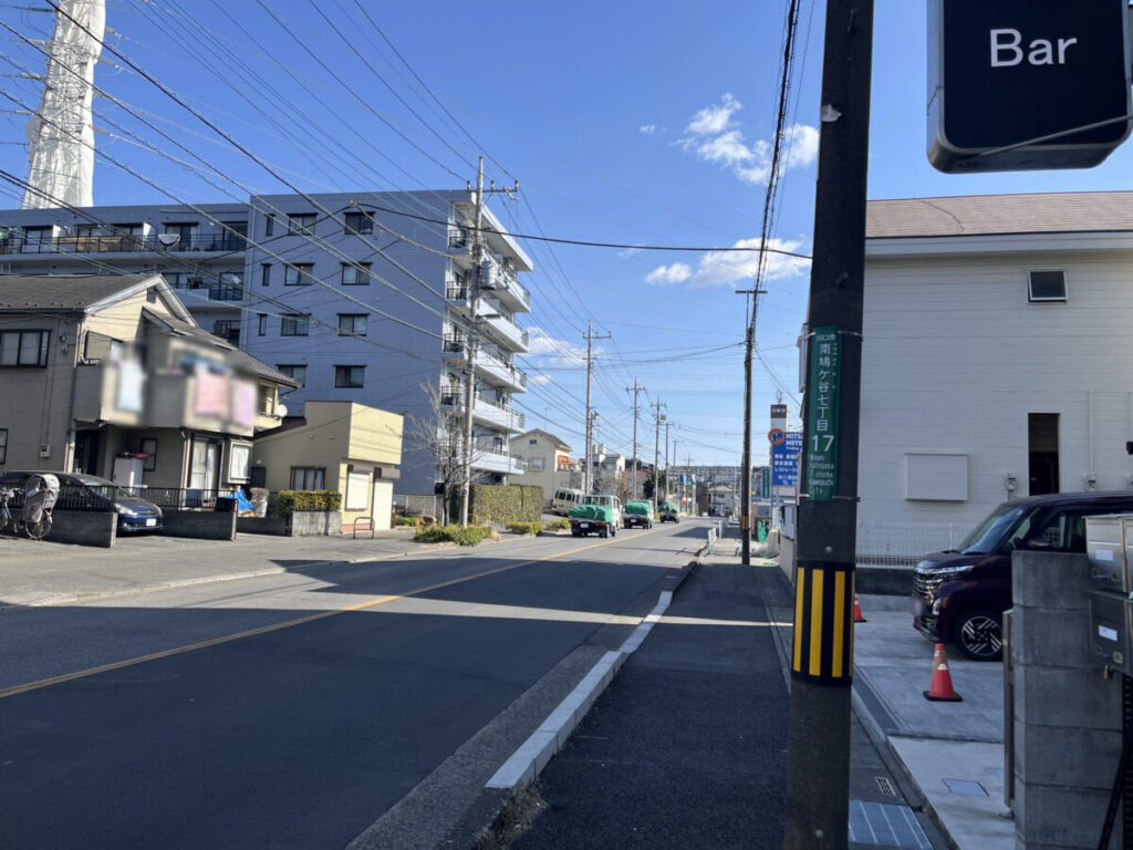 お店を背にして右はこんな感じ。少し行くと、東京電力の鳩ヶ谷変電所があり、さらに行くと「ジャパンミート卸売市場 鳩ヶ谷店」。